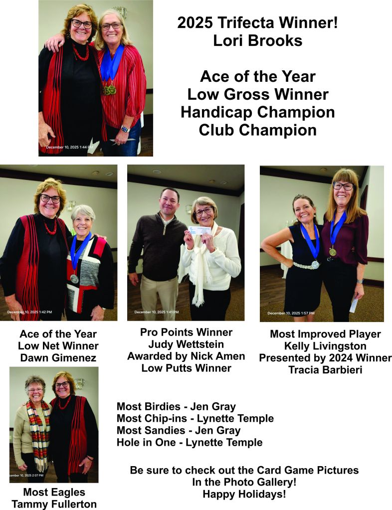 Lori Brooks making it a TRIFECTA winning Club Chanppion, Handicap Champion and now Ace of the year Winner of Low Gross