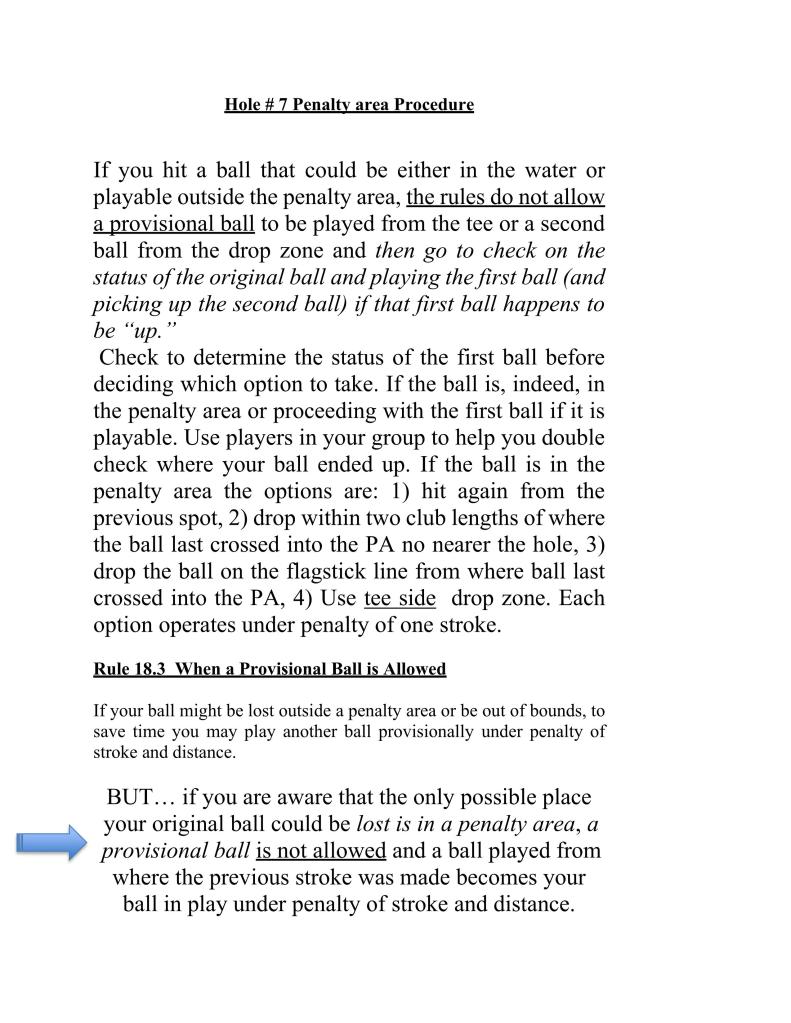 Here is a reminder on how to proceed on Hole #7 if your ball goes anywhere in the water!